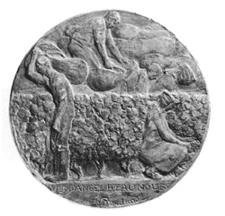 In 1900, he sculpted, for his own personal pleasure, a Burgundian Grape Picker carrying a double basket, heavy with grapes, who he had seen in the vineyard at the time of the grape harvest near Beaune.